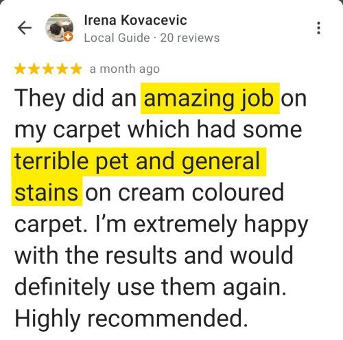 Reviews From Google & Facebook For Stain & Odour Removal